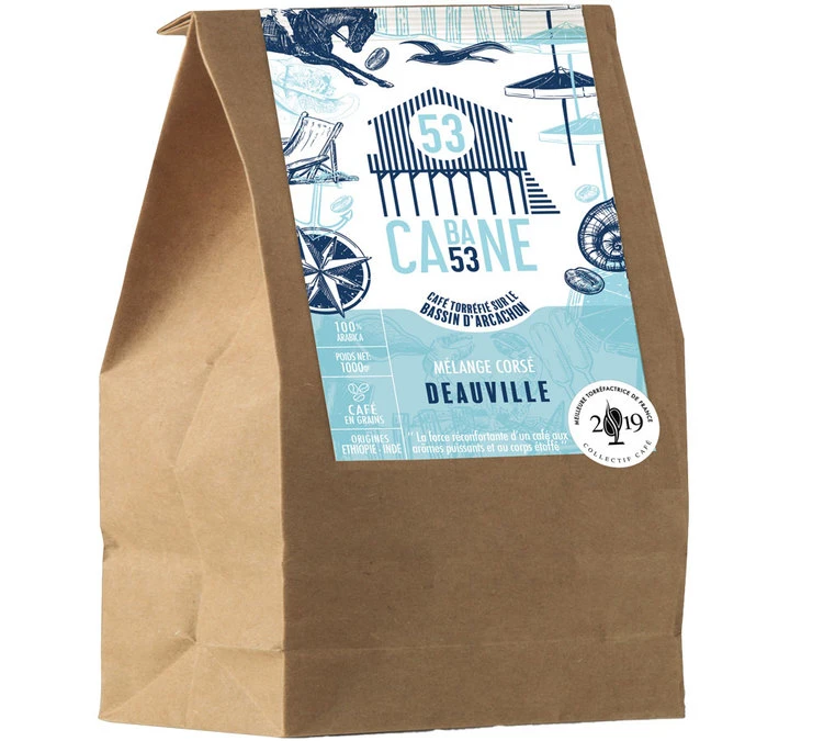 Découvrez le café en grain Deauville de Cabane 53, un mélange d’Arabica d’Ethiopie et d’Inde pour vous offrir une tasse corsée avec des notes de tabac, de poivre blanc et d’agrumes. Conditionnement : 1kg