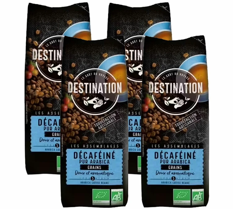 Découvrez le Décaféiné n°9, le café en grain bio et décaféiné de Destination – 4×250 g